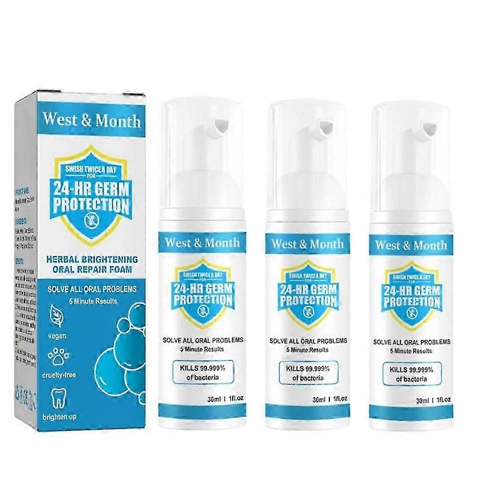 1-3PCS Jorondy Teeth Mouthwash,30ml Herbal Brightening Oral Repair Foam Deeply Cleaning