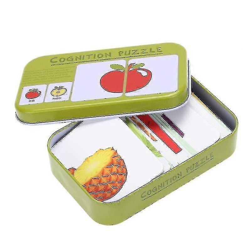1-6 Years Old Cognition Puzzles Toys Toddler Iron Box Cards Matching Game Cognitive Cards Vehicle Fruit Animal