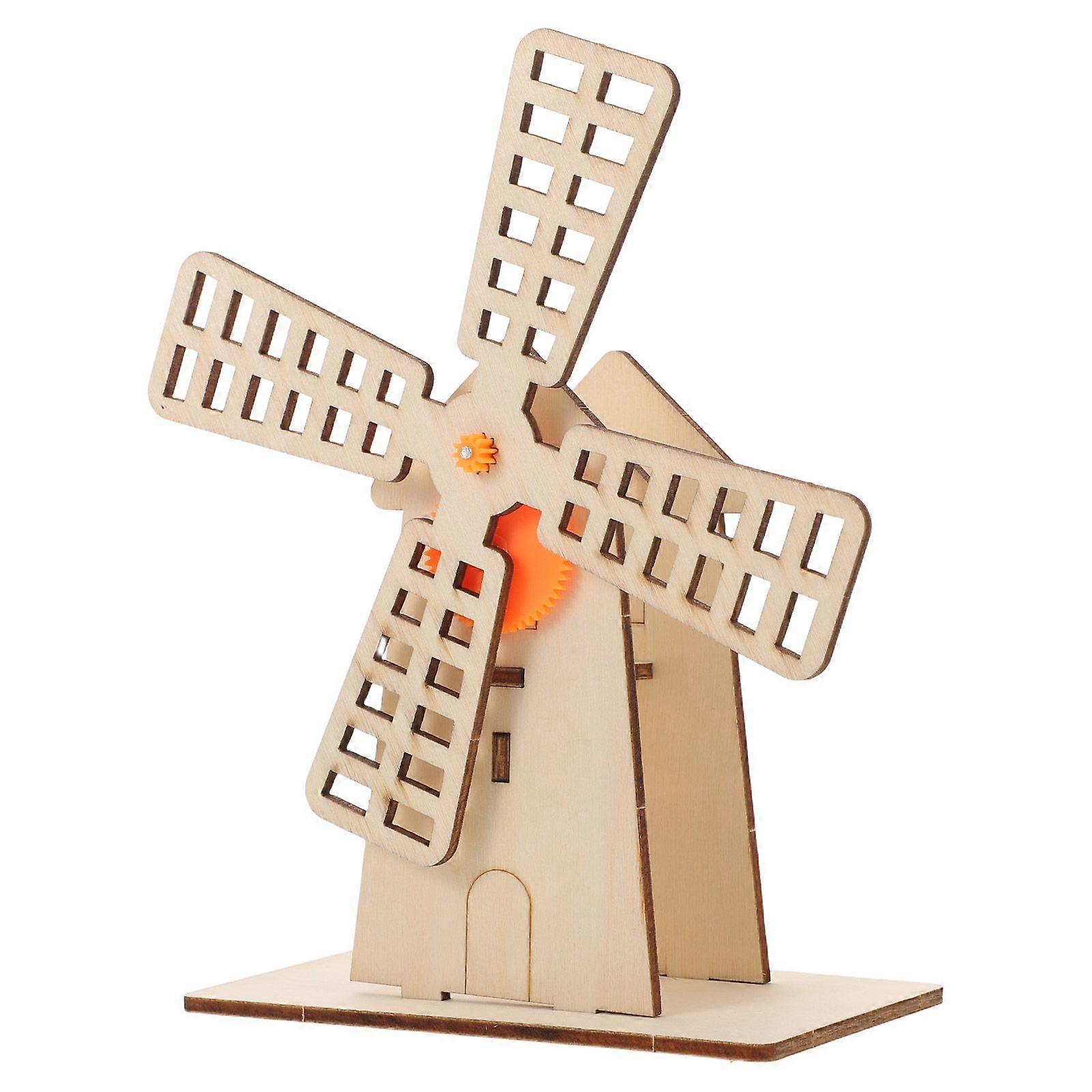 1 Set Stem Science Model Kit For Kids Diy Rotating Windmill Craft Wooden Assembly Toy Wind Turbine Gear Transmission Science Experiment Material