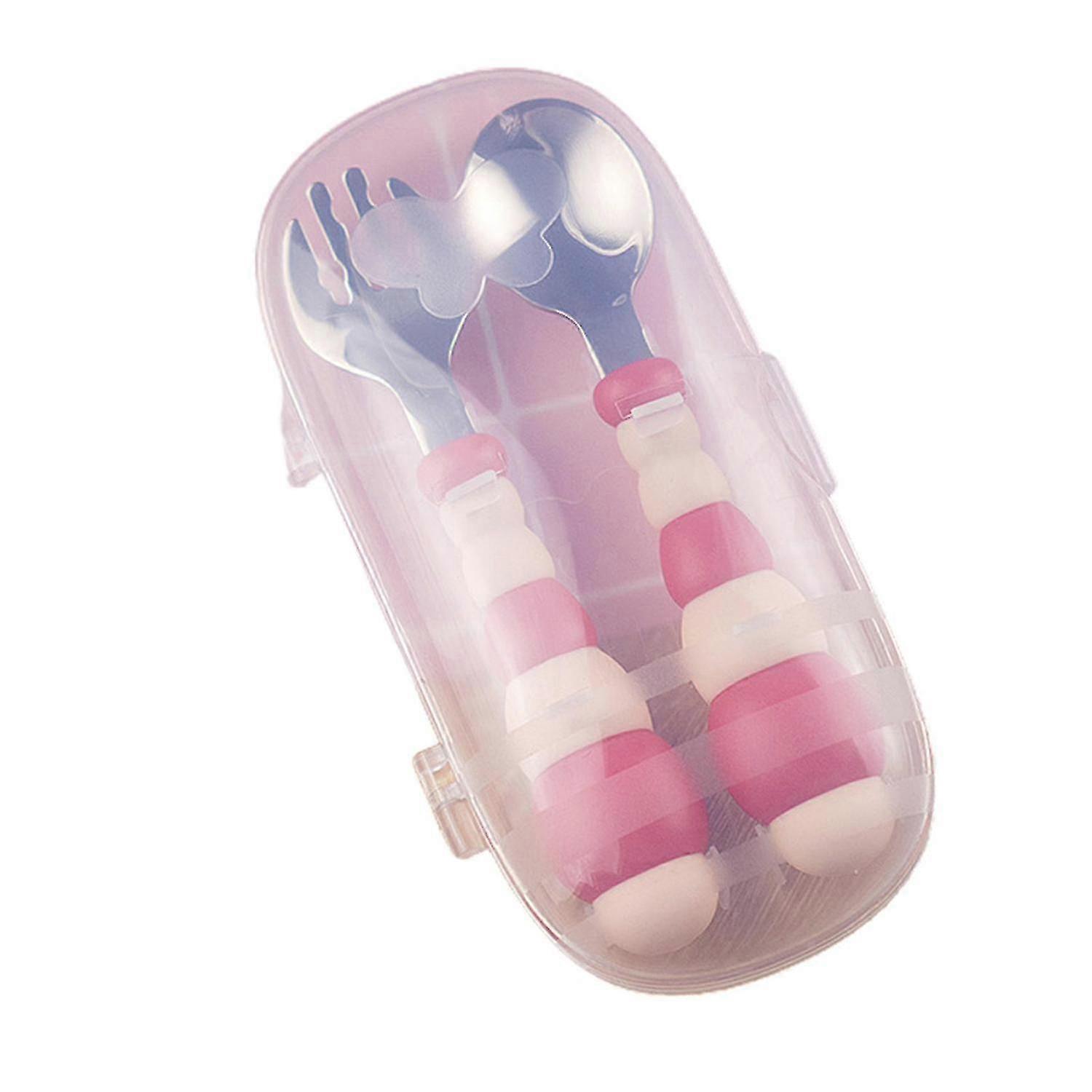 1 Set Kids Spoon Safe Food Grade Stainless Steel Travel Carrying Case Fork For Baby Red