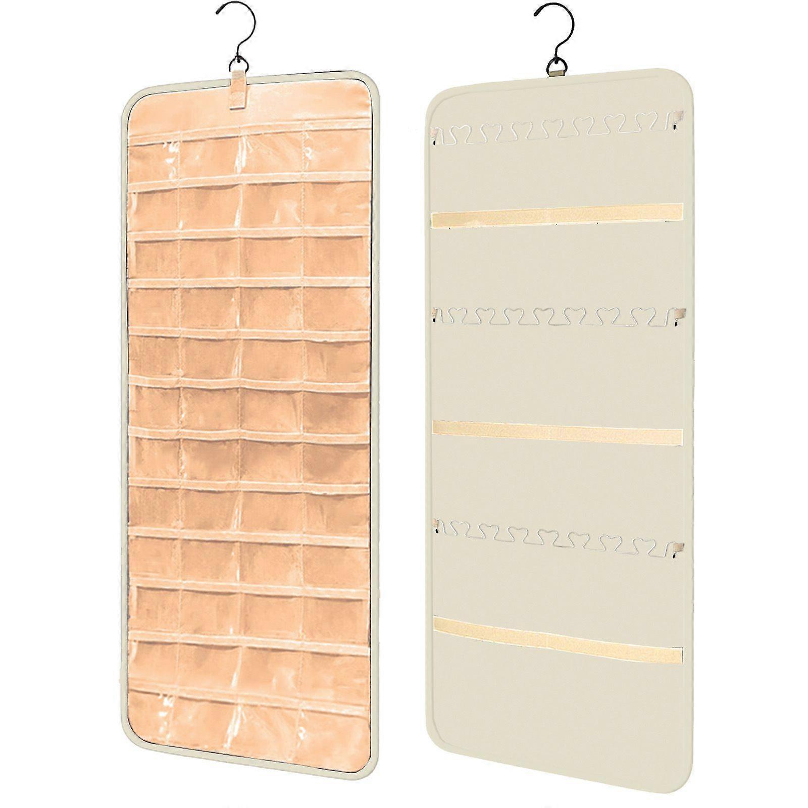 Hanging Jewelry Organizer Storage Roll with Hanger Metal Hooks Double-Sided Jewelry Holder for Earrings, Necklaces, Rings on Closet, Wall, Door, 1 Pie