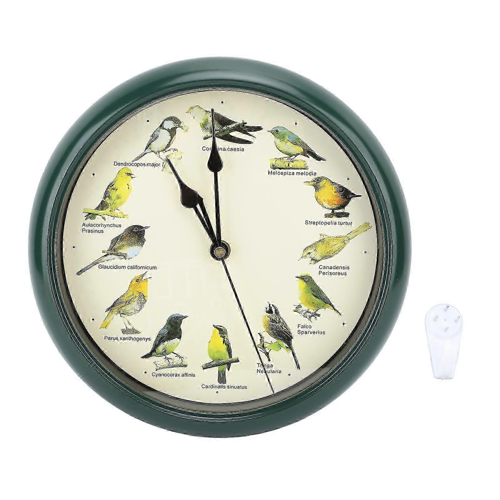10-Inch Round Cuckoo Wall Clock Bird Sound Musical Design Green Finish Hourly Chime Decorative Clock for Nature Themed Dco