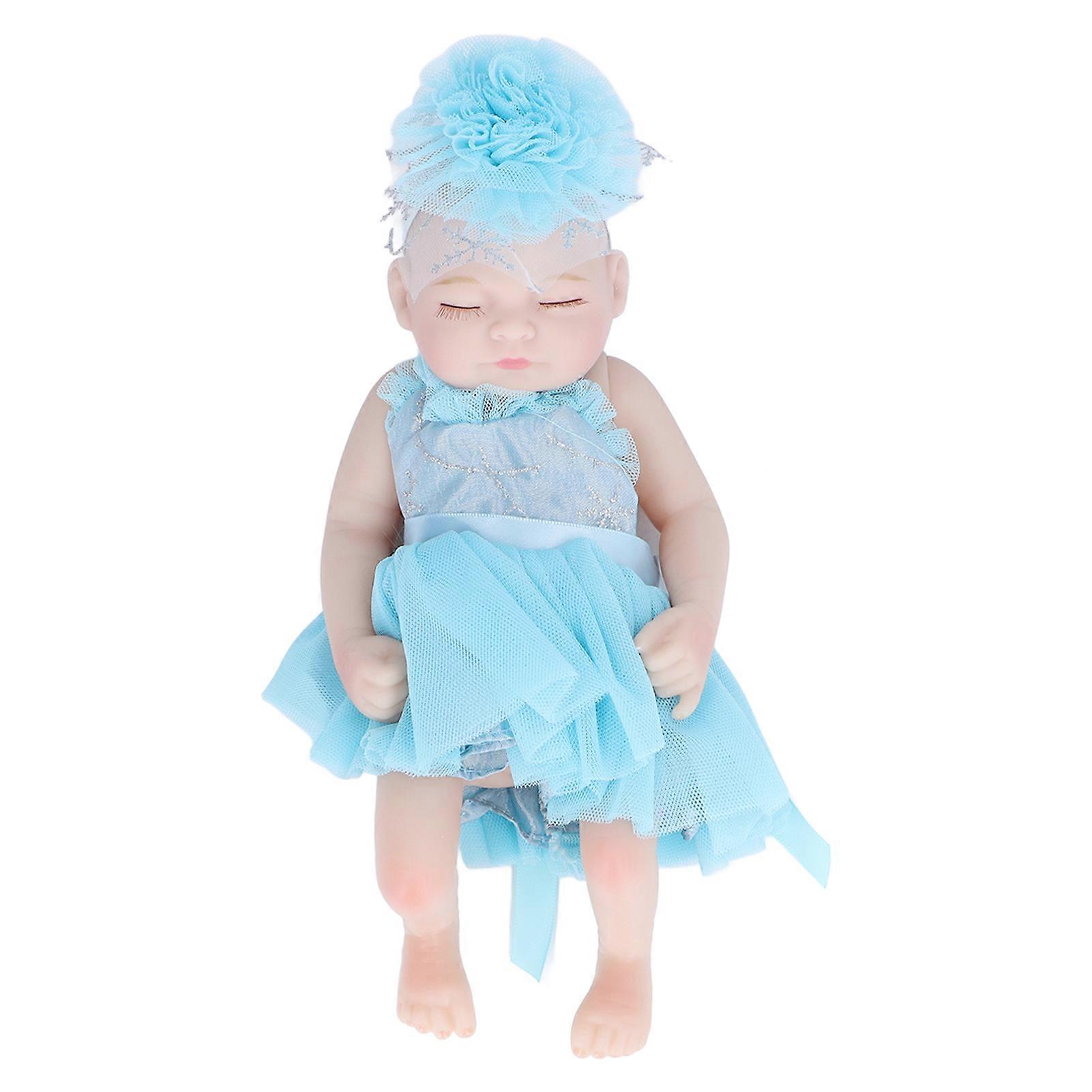 10inch Newborn Reborn Doll Soft Silicone Lifelike Sleeping Baby Doll Toy with Beautiful DressBlue Clothes