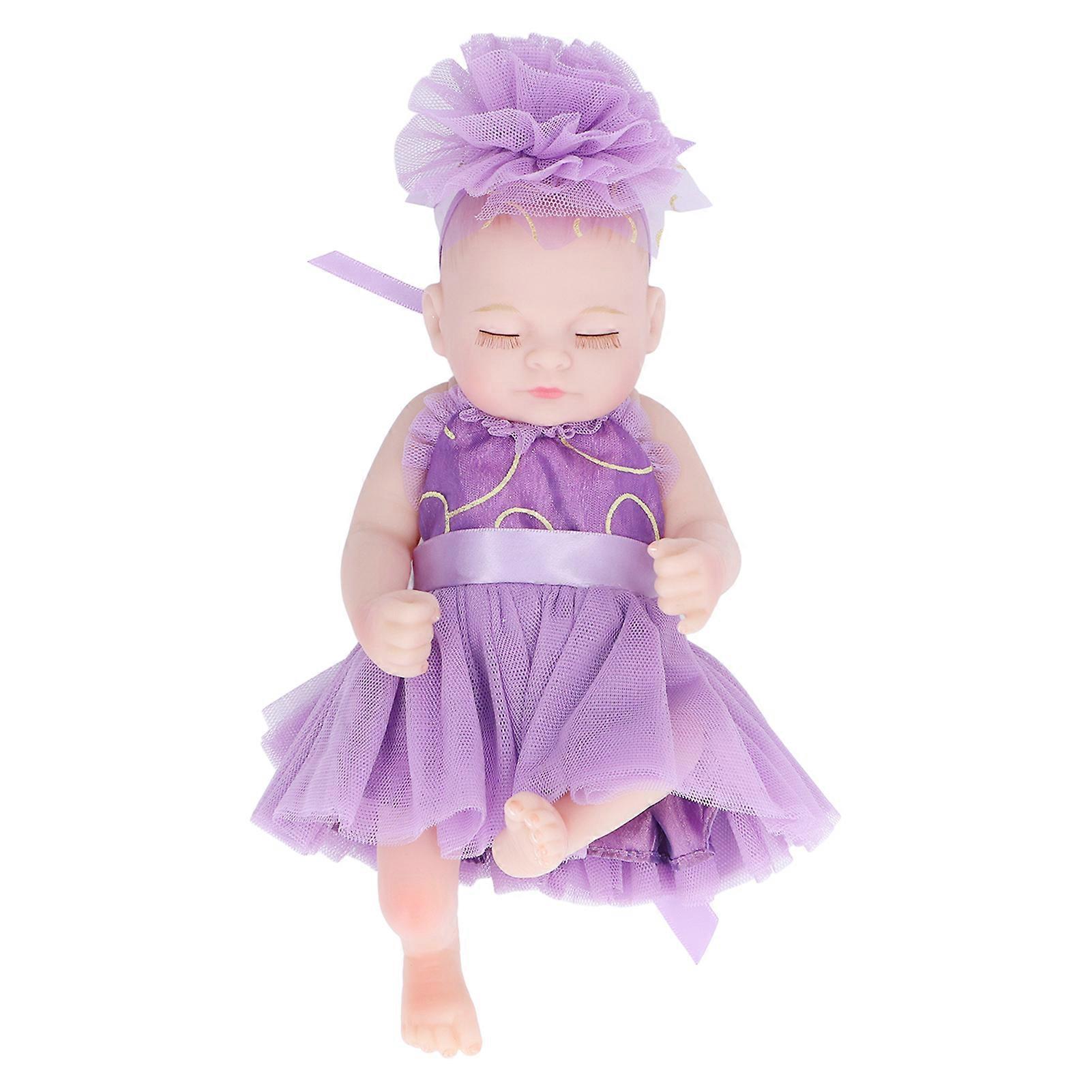 10inch Newborn Reborn Doll Soft Silicone Lifelike Sleeping Baby Doll Toy with Beautiful DressPurple Clothes