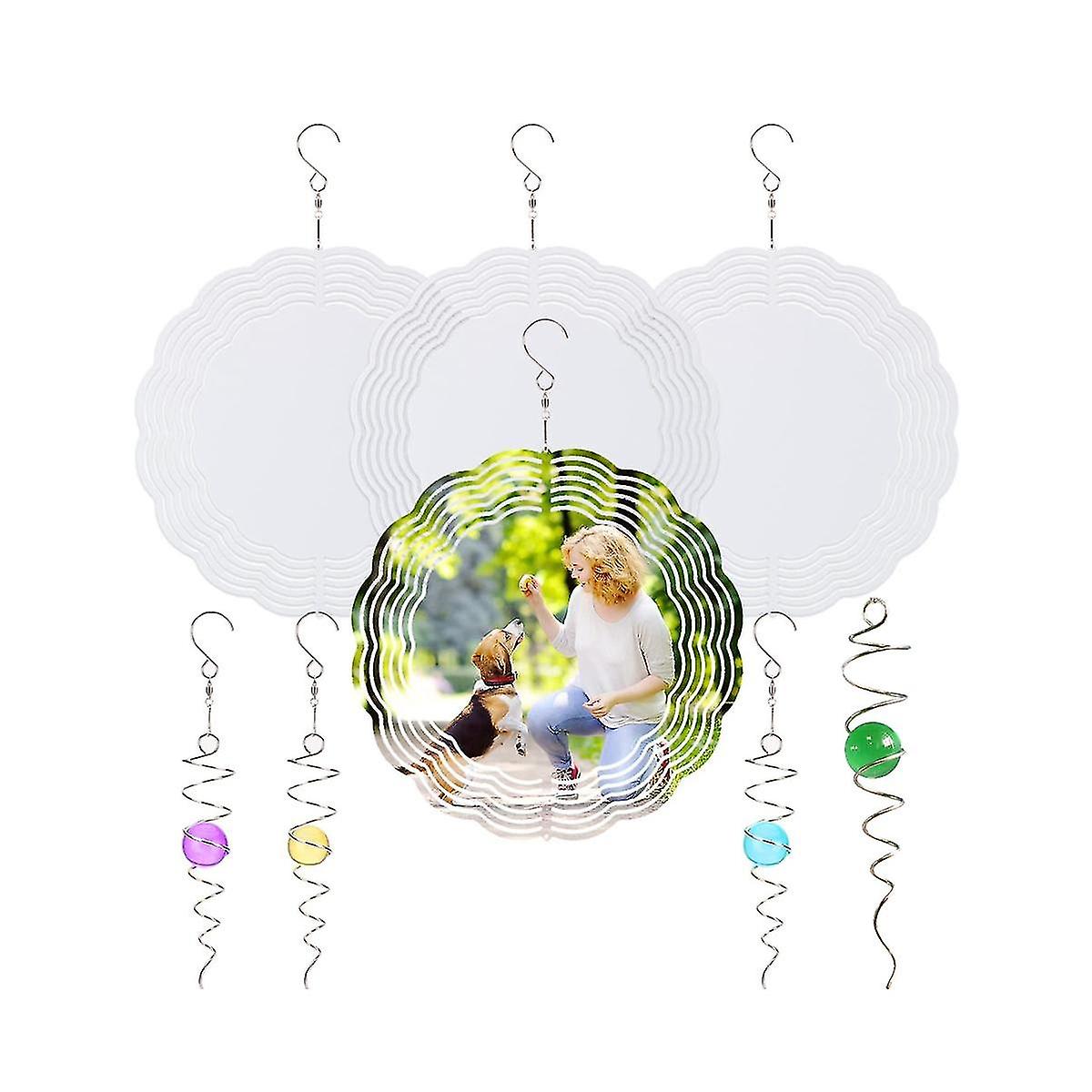 [WHAT YOU GET]4 white sublimated wind Sculpture to decorate your your interior, garden, patio, porch, backyard. each measuring approximately 10 x 10 inches(25.4cmx25.4cmx0.1cm to be exact). Wind spinners can hang up wherever you like, or made into a surprise gift for your loved ones, friends on Mother's Day, Father's Day, Halloween, Christmas. Sturdy Material:the 3D wind spinner is made of aluminum, which has long lasting performance, vivid shape, waterproof, flexible and strong; This sublimation blank wind spinner is powder coated for maximum rust and corrosion resistance; Our hanging wind spinner is easy to open and has edges that 't hurt your skin Hanging anywhere you want: With a swivel hook and weighted spiral ball tail, you can hang the butterfly wind chime catcher to windows, walls, ceilings, balconies, yard branches, or bright rooms . Easy to use: Equipped with a swivel top hook to hang and install; before use, you can twist the side of the to the angle you desire and spin it to create a fantastic 3D visual effect. Suitable for All Kinds of Printing DIY:our blank wind spinners are suitable for vinyl graphics, screen printing, UV printing, thermal transfer printing, you can choose your favorite patterns and elements, print on these plates, DIY yours proprietary characteristic wind chimes, please remove the protective film before operation Colour:White Material: metal Size:250x250x1mm Note:The pattern is a rendering, and the actual product is blank Package Contents: 4 x Sublimation Wind Spinner Blanks 4 x different colors gazing ball spiral tail Only the above package content, other products are not included. Note: Light reflection and different displays may cause the color of the item in the picture a little different from the real thing. The measurement allowed error is +/- 1-3cm.