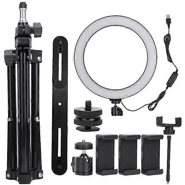 10in LED Ring Light Dimmable USB Port Photography Lamp with Phone Clip Tripod Double Equipment Stand Base