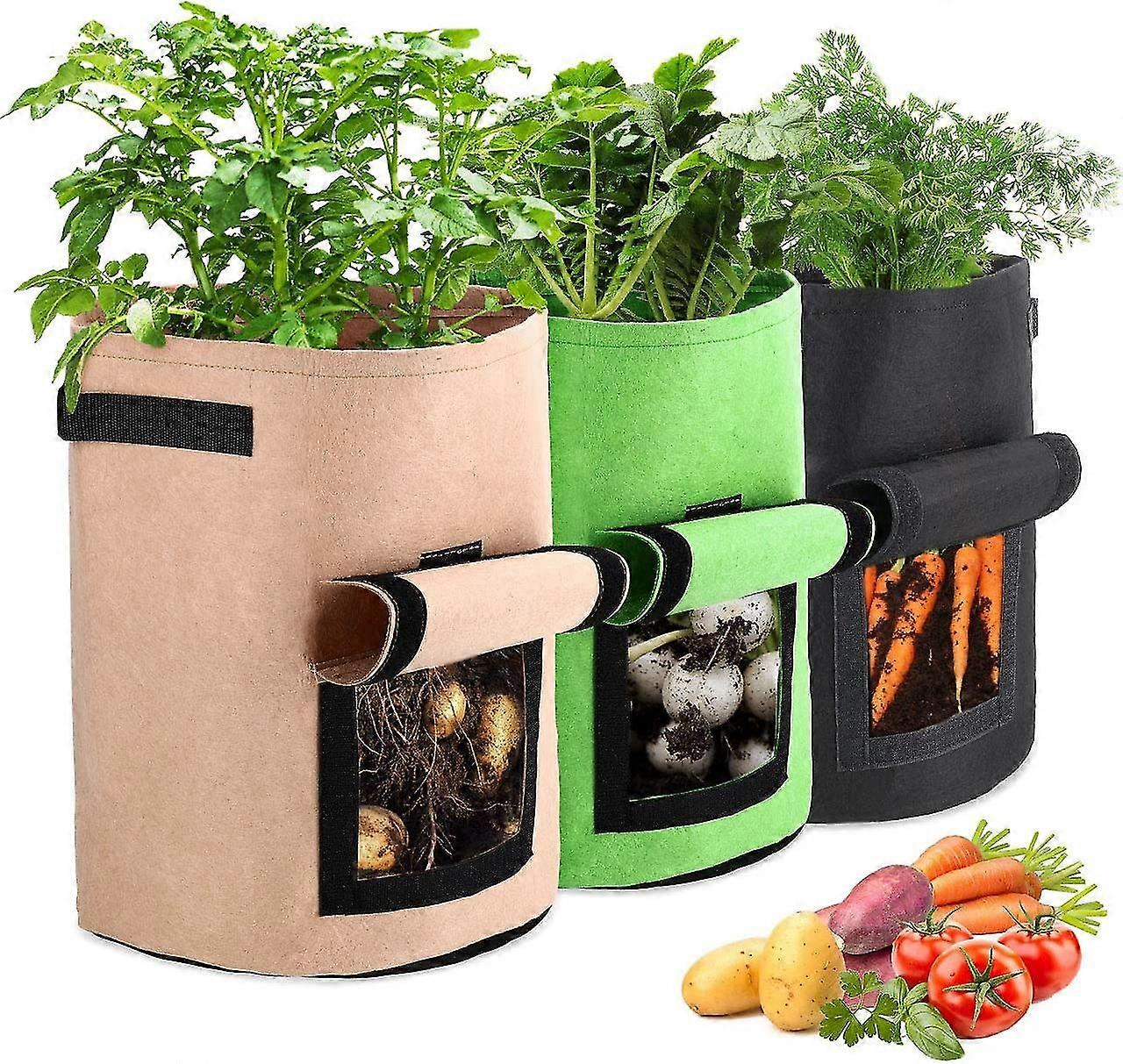 10 Gallon Garden Planting Bags, 3pcs Reusable Non-Woven Fabric Potato Vegetable Grow Bags