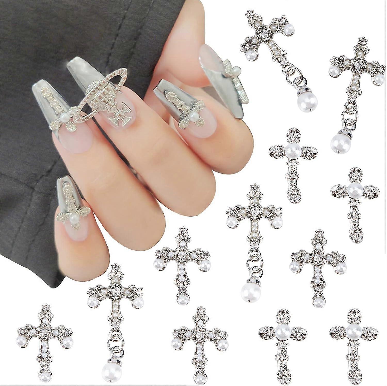 Set of 10 crossover nail art charms, 3D large nail jewels with pearls for nail decoration