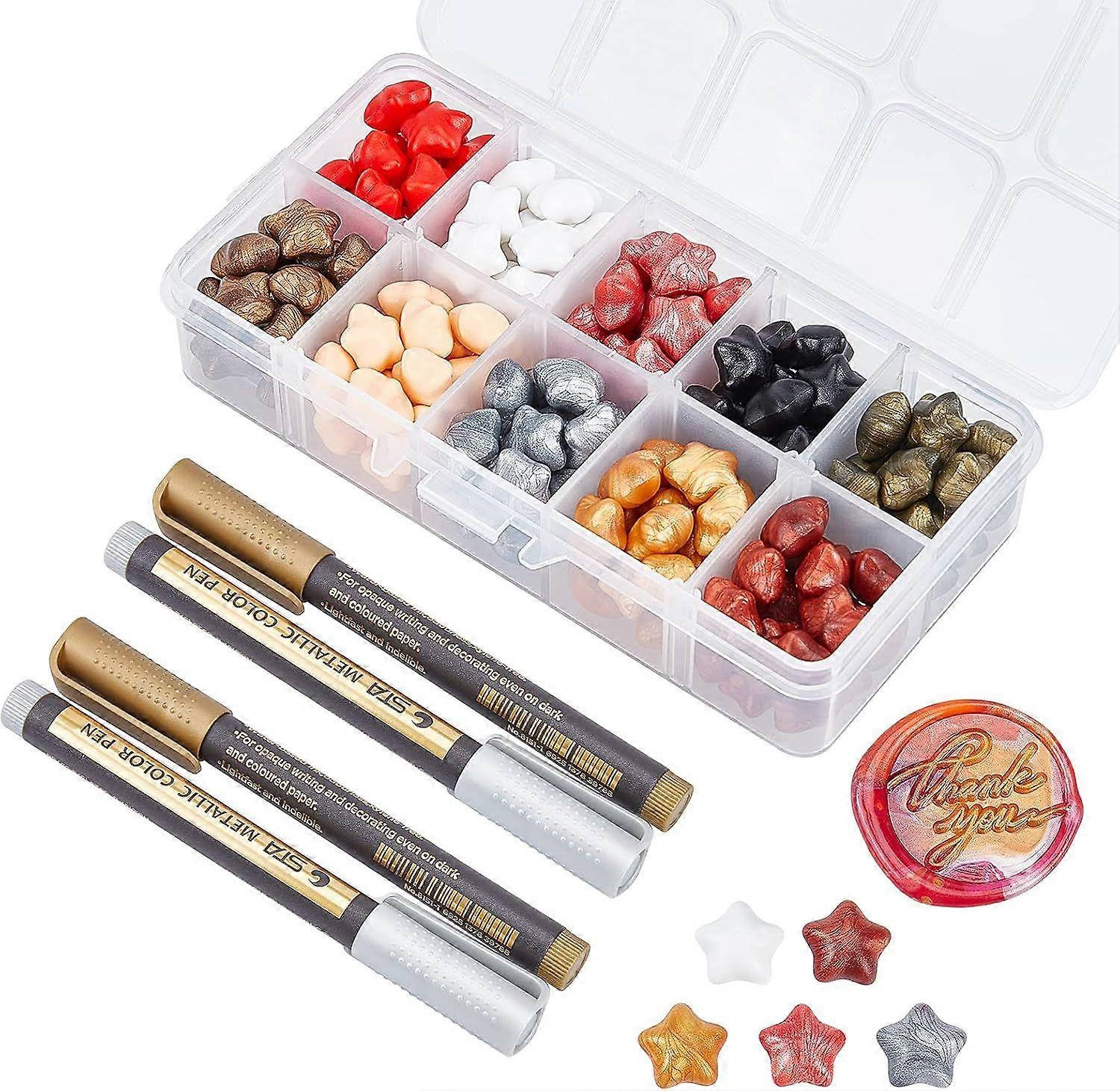 10 Colors Sealing Wax Beads Packed in 10 Compartment Box 150pcs Wax Seal Beads4pcs Pens for Wax Seal Stamp Sealing Halloween Wedding Invitation Gift W