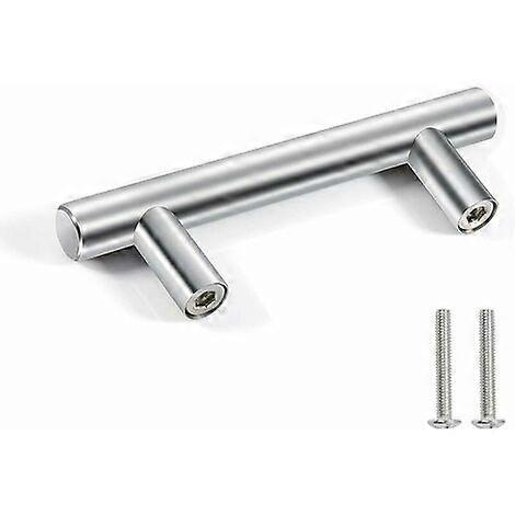 10 Stainless Steel Door Handles - Handles for Furniture, Cupboards with Screws - Silver, 64mm Center Distance