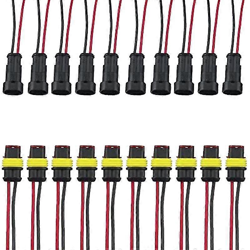 10 Sets of 2-Pin Automotive Waterproof Electrical Connector Plugs with Wires