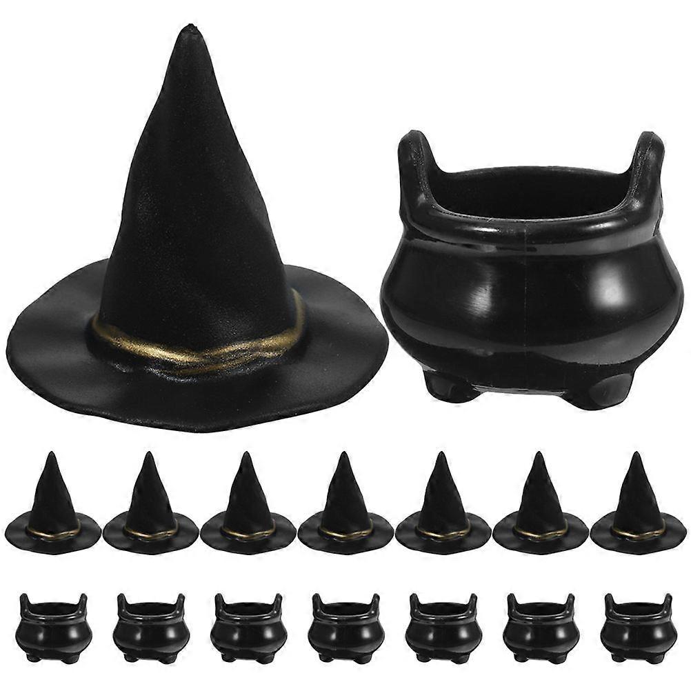 10 Sets Miniature Halloween Cauldron Witch Hats Ornaments Micro Landscape Decoration