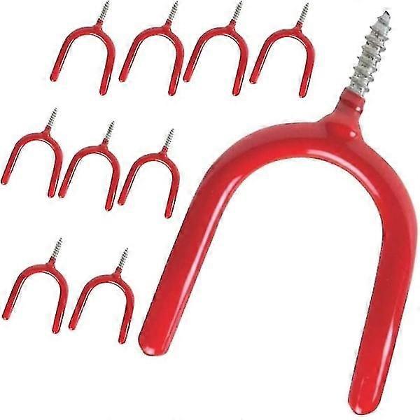 Each tool hanger has a tough super grip, the vinyl coated finish can effectively protect the tools and does not cause scratches. The garage hooks are rust resistant with vinyl coated finish. With the sharp threaded head, our garage tool hooks can be easily screwed into the wooden wall without the need for a pilot hole . For drywall, appropriate anchors and the pre-drilled hole would be needed. These shed garden hooks are Heavy duty organizer for garage shed storage. Our garage storage hooks are made of thick and solid steel and allow many years of use without bending or deform. Our garden tool hangers are ideal for hanging shovels, brooms, rakes, mops and more. Materials: metal and plastic Safe working load capacity: 30 lbs. Easy to install, just drill a pilot hole in the wall rule and then screw in. Package included: 10 pcs Screw-in U Utility Hooks Notes: Manual measurement, please allow slight error on the size. The color may have a slight difference due to different screen displays.