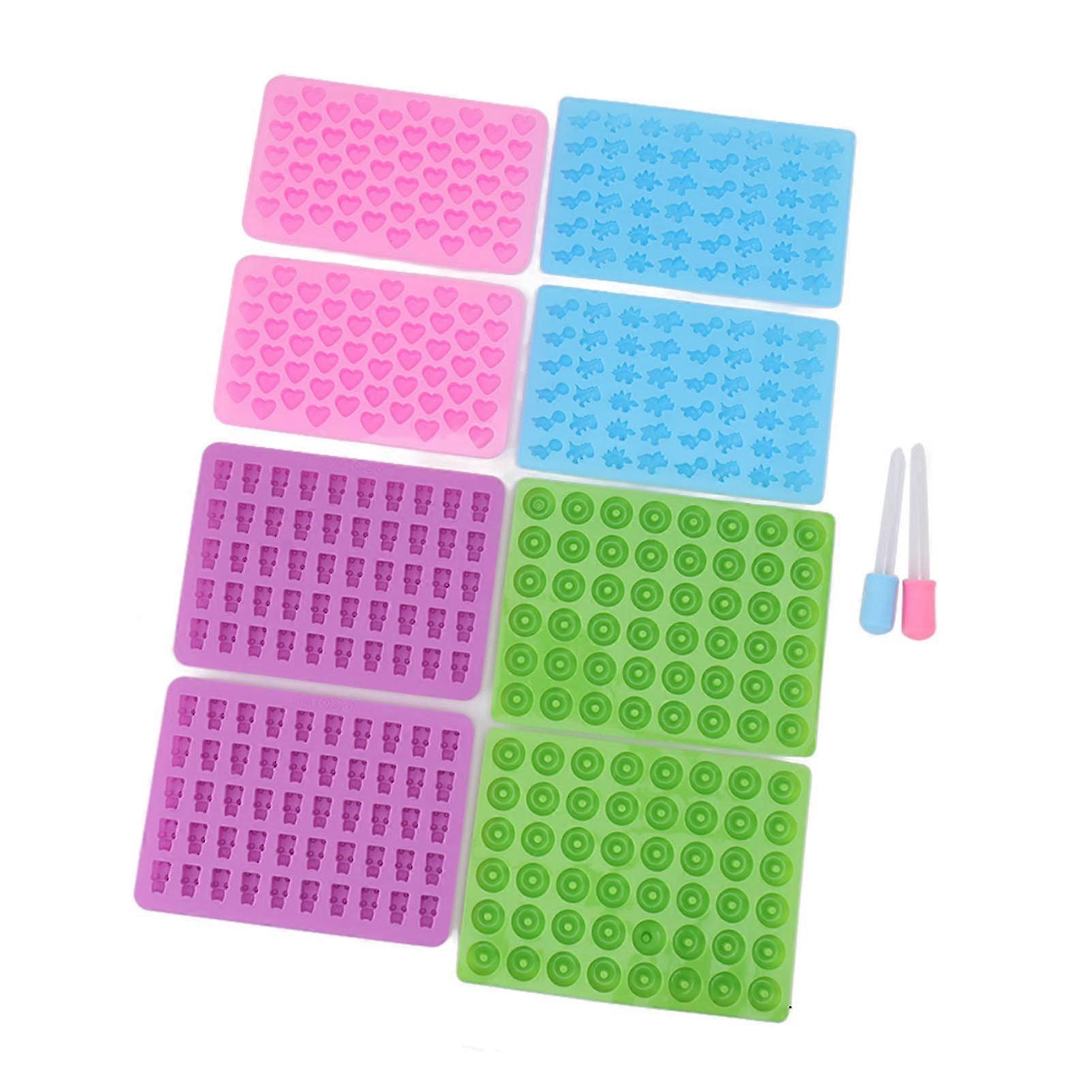 10-Pack Silicone Candy Molds - Mini Dinosaur Bear Heart Donut Shapes with Dropper