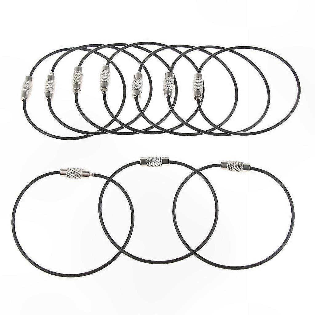 Made of 204 stainless steel and PVC insulating rubber, offering good elasticity and resistance to deformation. The product has passed a 20kg tensile strength test, ensuring a firm and secure hold. Easily add or remove items by unscrewing or screwing the connectors. Lightweight and portable, suitable for outdoor use. Ideal for hanging luggage tags, keyrings, keychains, flashlights, pliers, car keys, flash cards, and more. Specifications: Material: 204 stainless steel Length: Approx. 15cm / 5.91 inches Wire Diameter: Approx. 1.5mm / 0.06 inches Diameter after Connection: Approx. 4.5cm / 1.77 inches Package Includes: 10 x Wire Keychain Cables Note: Slight size deviations and color differences may occur.