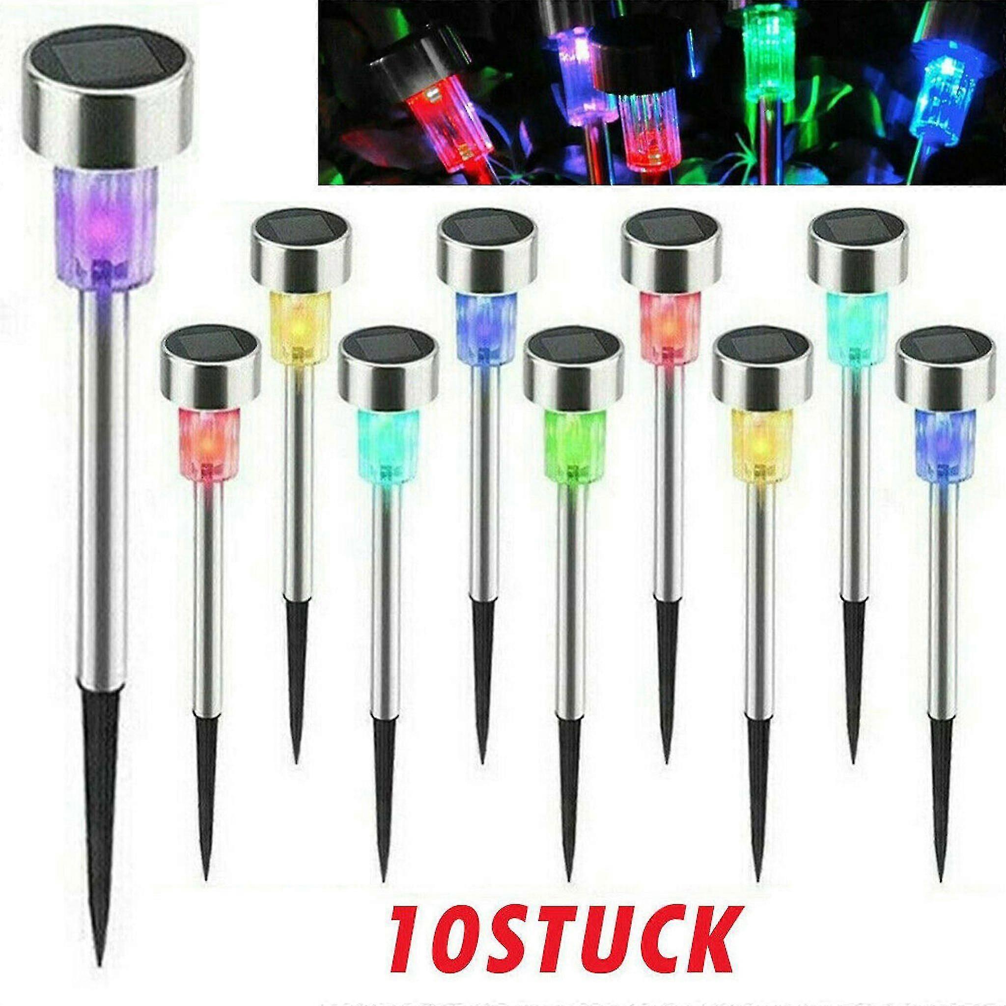 10 Pack Stainless Steel Solar LED Light Multi Colour Outdoor Garden Lighting cs
