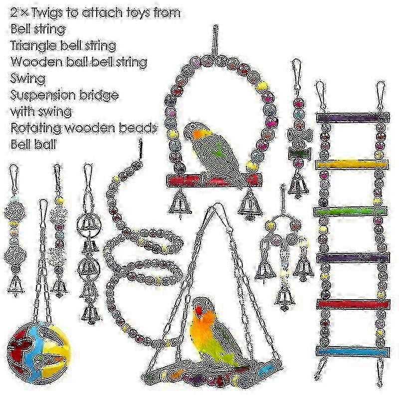 10 Pack Bird Cage Toys For Parrots Reliable Hanging Chewing Bite Bridge Wooden Beads Ball Bell Toys Gift