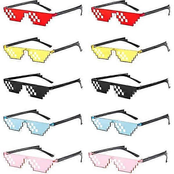 10-Pack Party Glasses 8-Bit Pixelated Mosaic Gamer Photo Props Glasses for Adults Teens