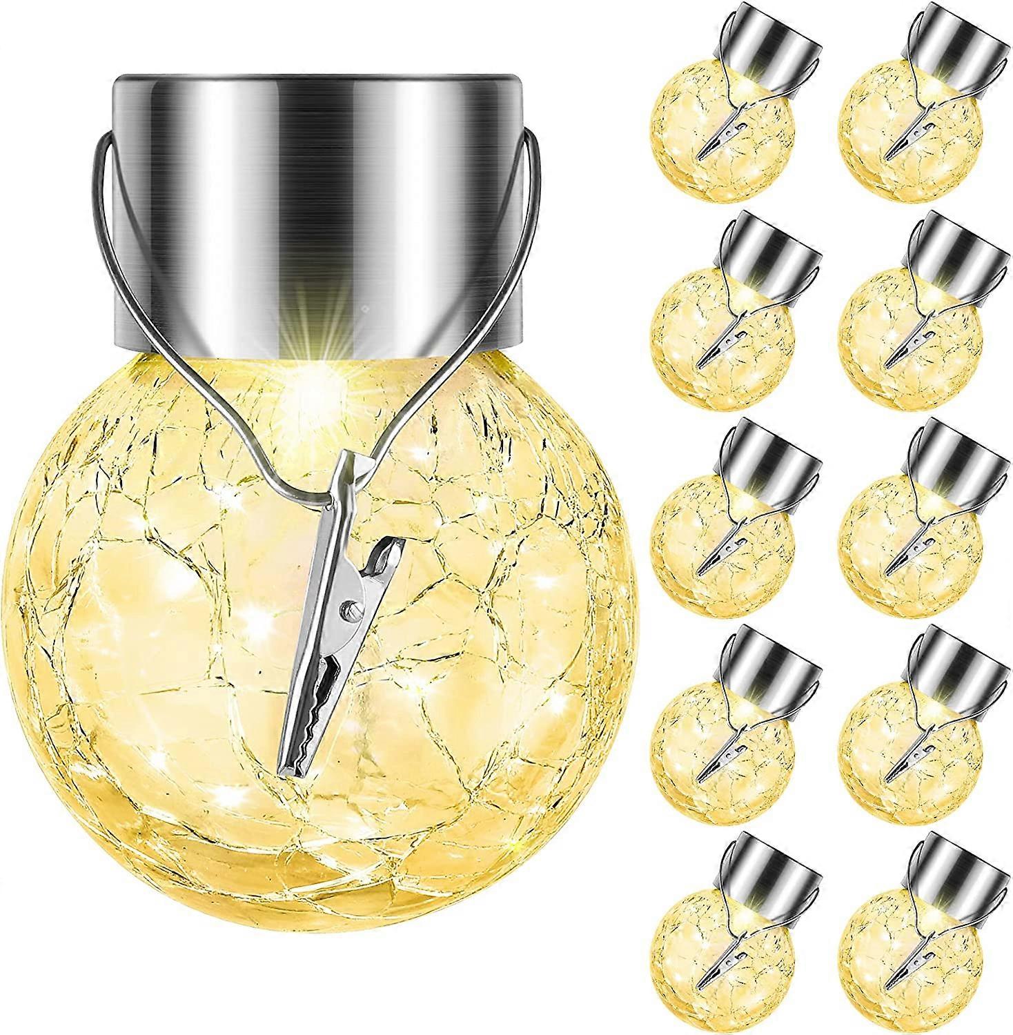 10-Pack Hanging Solar Lights Outdoor, Decorative Cracked Glass Ball Light, Solar Powered Waterproof Globe Lighting