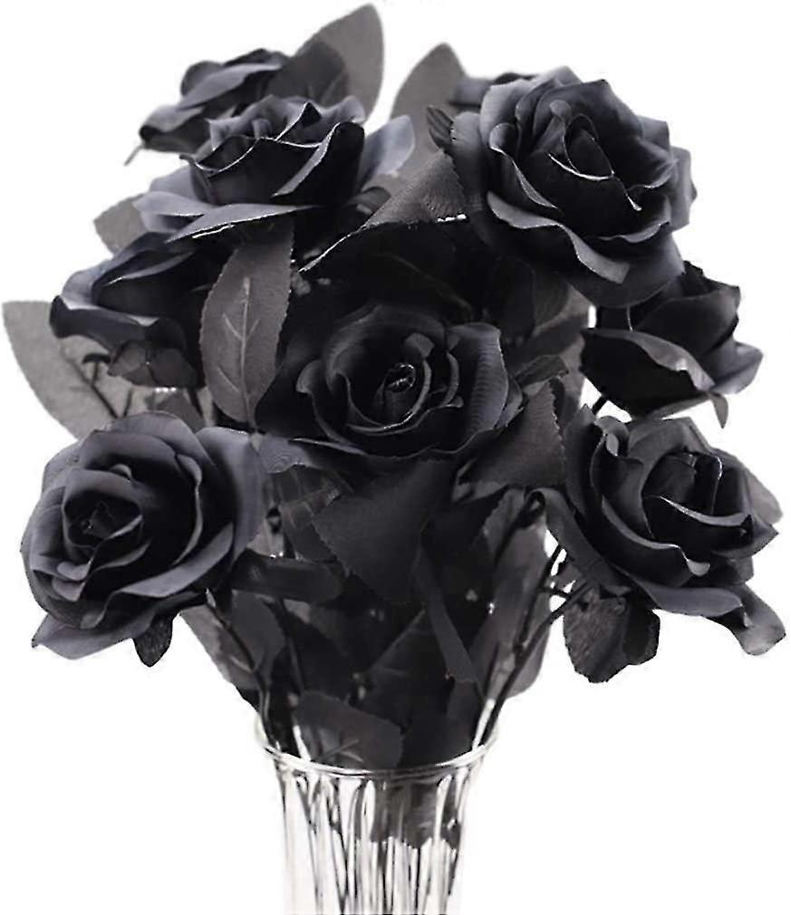 10 Pack Black Silk Rose Flowers - Artificial Single Stem for Home Decor, Weddings, Parties & Special Occasions