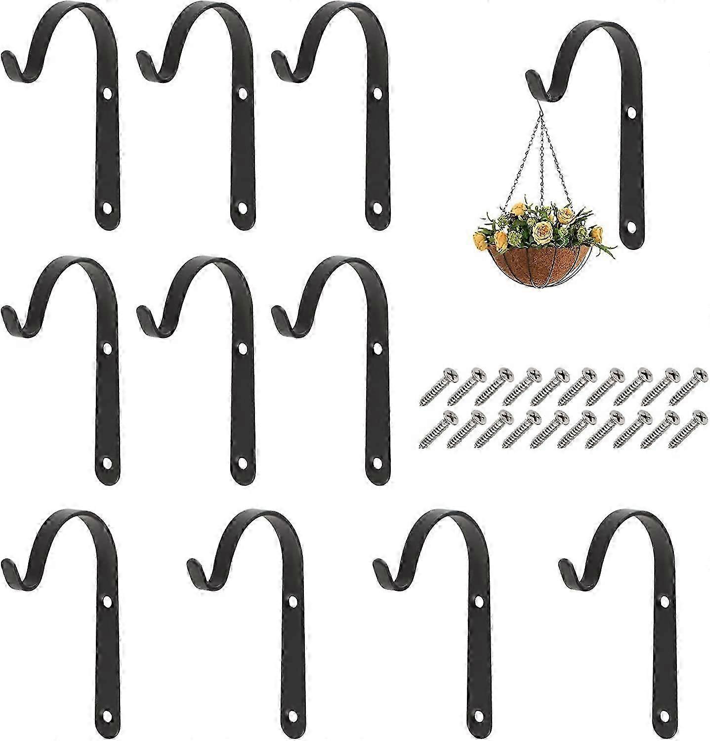 10 Pack Black Plant Hooks Wall Hanging Plant Hooks Basket Holder with Screws for Garden Lantern Gate Wind Chimes Bird Feeder (7*4cm)