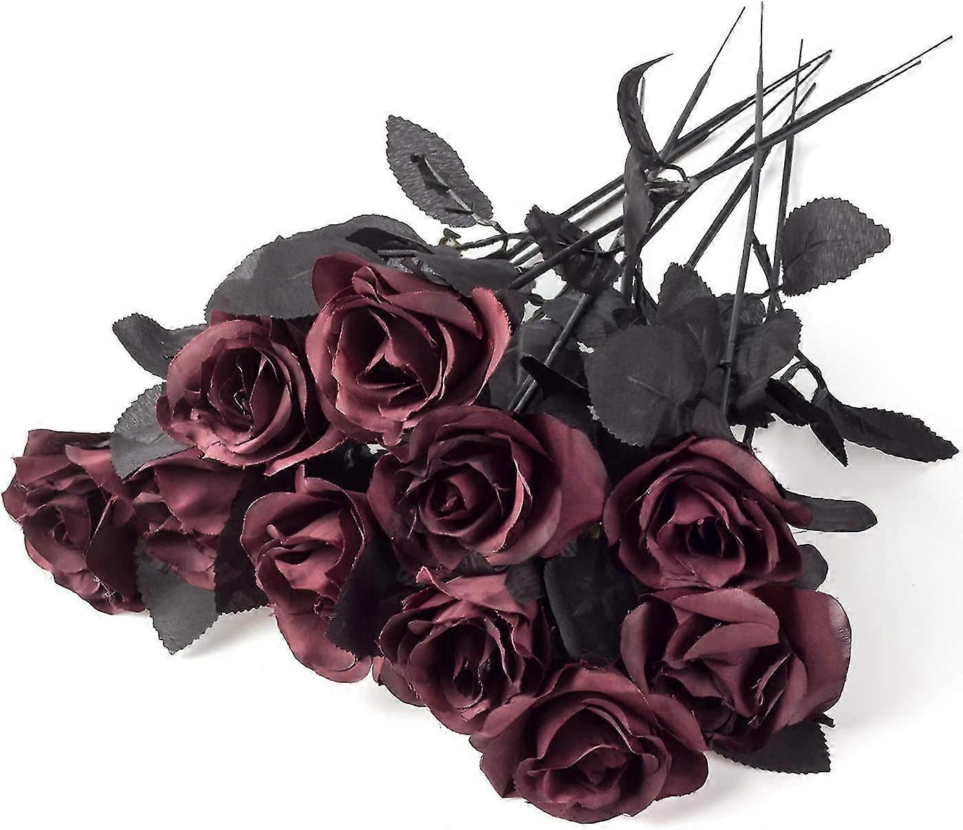 10 pack Black Artificial Silk Roses Flowers Fake Silk Rose Bouquets for Wedding PartyBlack (D-4)