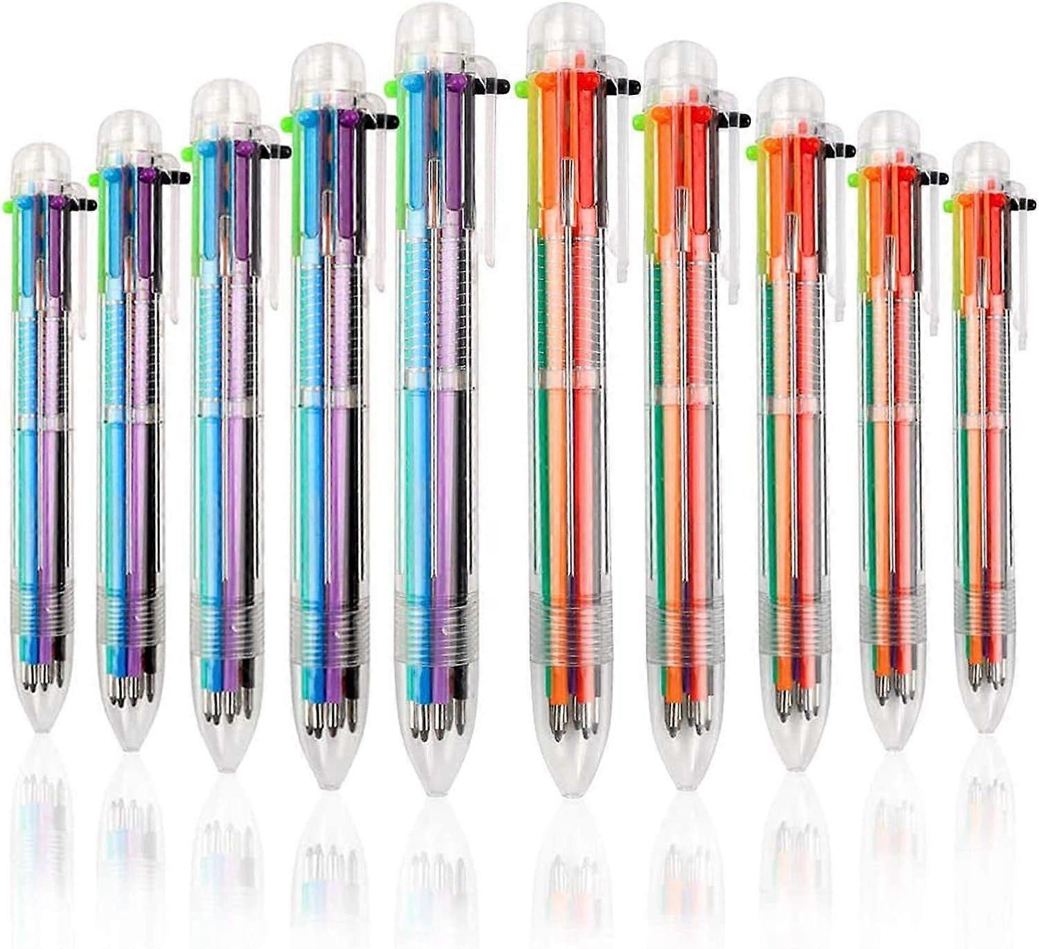 10 Pack Multicolor Ballpoint Pens 0.5mm 6-in-1, Fun Pens for Kids Party Favors, Back to School, Retractable Ballpoint Rainbow Pens Color Pens for Offi