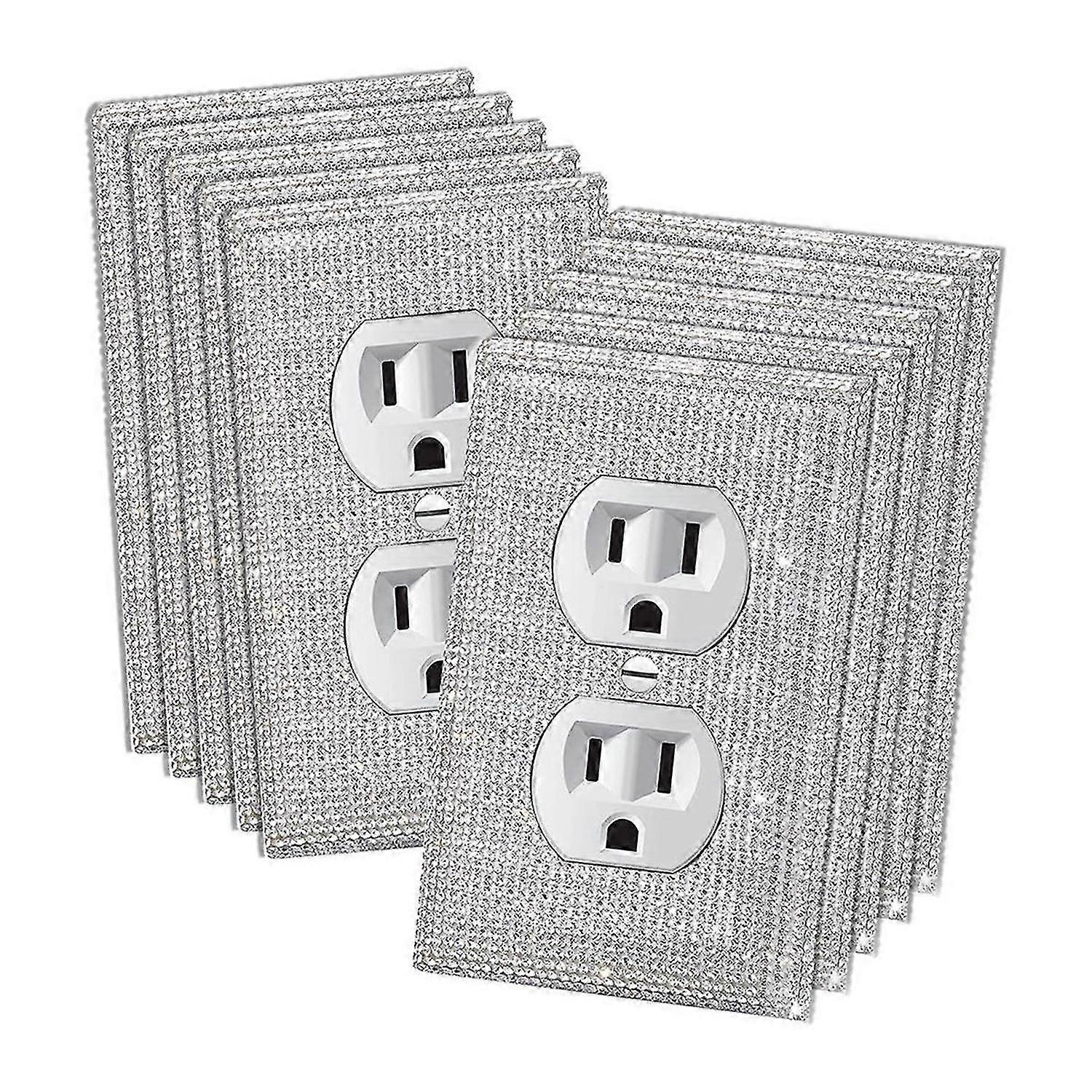 10 Pack Light Switch Covers and Sockets, Bling Rhinestone Wall Plate Covers, Silver Bling Rhinestone