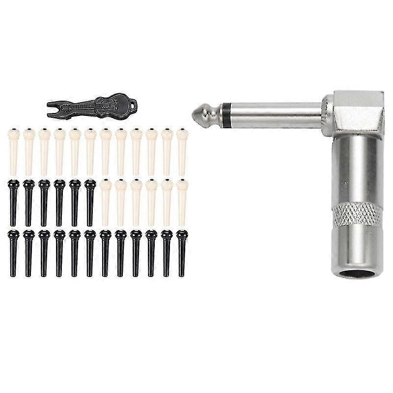 10 Pack Lot 6.m Ts Right Mono Ph Plug With 36pcs Acoic Guitar Brid Pins Pegs In And
