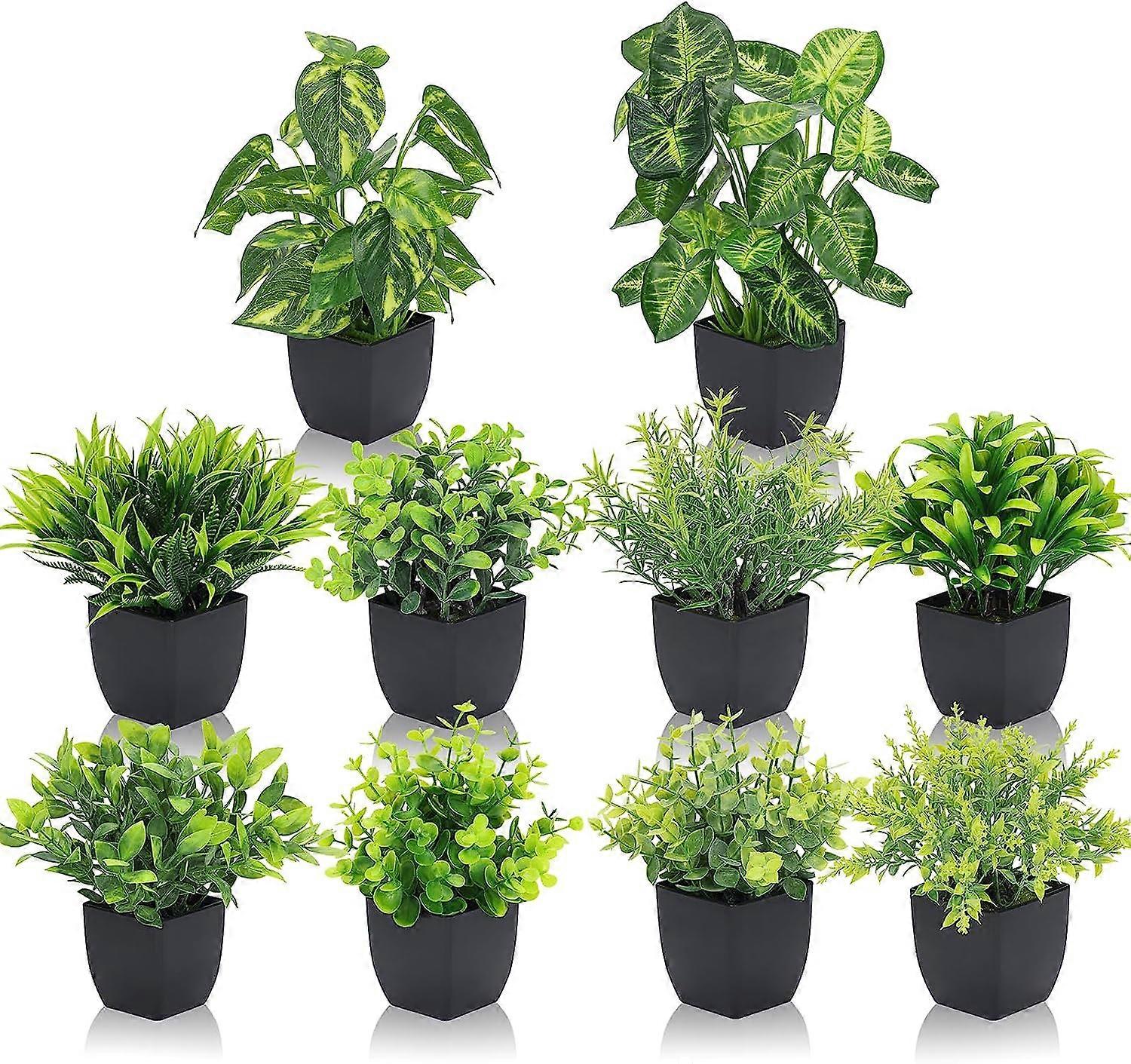 10 Pack Small Fake Potted Plants Mini Artificial Plants Faux Plants for Desk Home Bathroom Wall Decor (Black Pots)