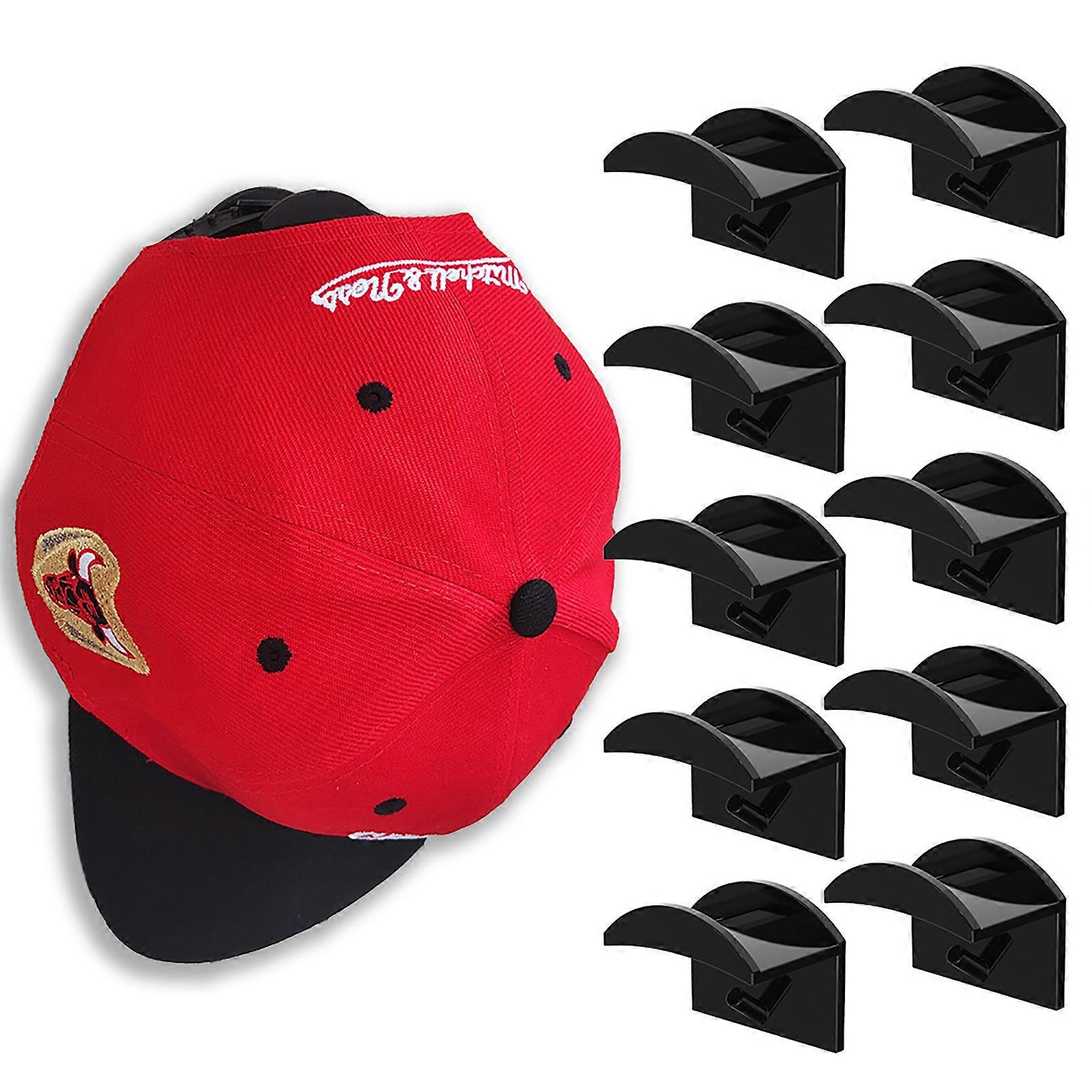 10 Pack Adhesive Hat Holder Cap Hook for Wall Mount No Drilling Hat Rack Organizer Strong Hold for Baseball Caps Modern Hat Hangers Storage for Door,