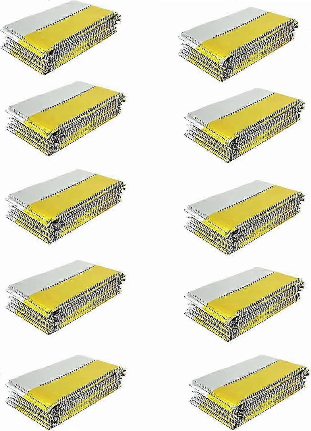 [10 Pack] 210 x 160cm Extra Large Emergency Blanket Gold Foil Waterproof Mylar Survival Blanket Heating for Camping, Hiking-Good