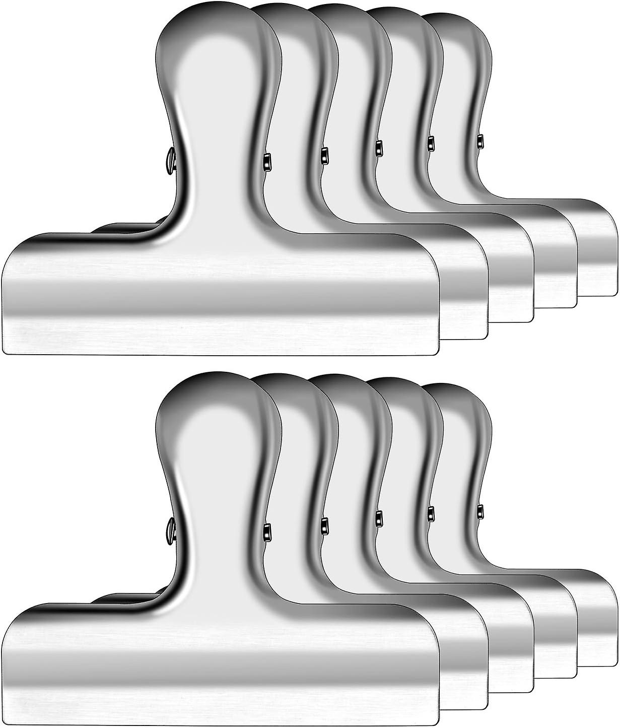 10 Pack 3 Inch Wide Stainless Steel Solid Fresh-Keeping Chip Clips Heavy Duty Food Bag Clamp,All-Pur