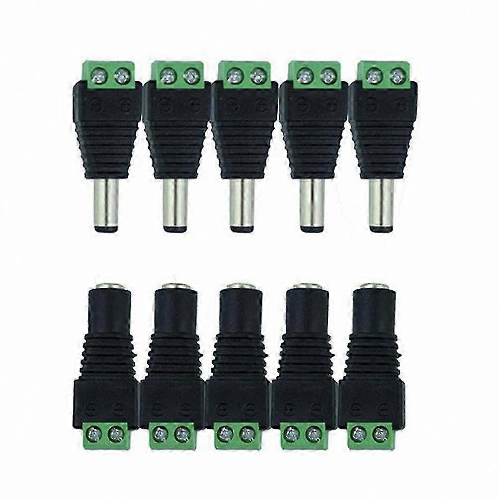 10-Pack DC Power Connectors: 5 Male and 5 Female Plugs for CCTV Cameras and LED Strip Lights Adapter Cables
