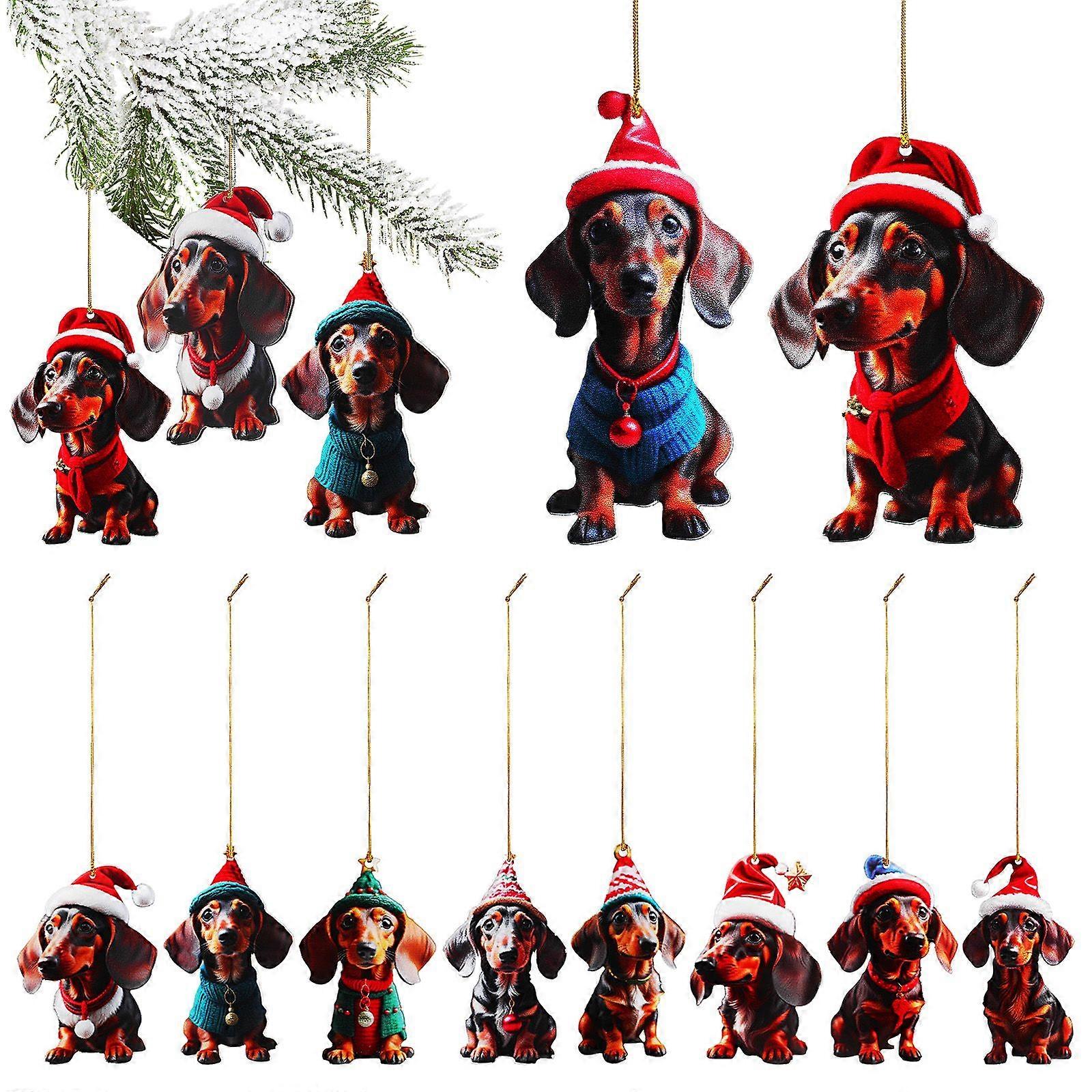 Description The dachshund pendants capture the unique charm and playfulness of the dog, cute and creative, making them great addition to any Christmas party.Each pendant is meticulously crafted, showcasing intricate features and lifelike expressions. They are also sweet presents for puppet lovers. Features -Color:As shown -Material:Acrylic -Size:8.00X5.60X0.30cm/3.14X2.20X0.12in - Unique Design: Featuring various dachshund shapes with different decorations, these dog pendants will cater to different preferences. - Premium Material: Made of selected acrylic materials, these dachshund pendants are sturdy enough for long-term use. - Exquisite Craftsmanship: Each Christmas tree pendant is meticulously polished and well-painted, showcasing intricate details. - Versatile Use: These dog pendants can be used as a key chain, hanging ornament, or car decoration, adding personality and a sense of fashion. - Unique Present Choice: These pendants are exquisite and adorable, ideal presentsfor dachshund enthusiasts, showing your care and taste.Package listing: 10 x dog hanging ornaments