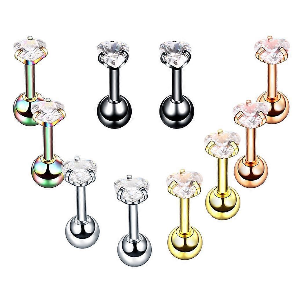 10 Pieces Stainless Steel Zircon Crystal Labret Lip Helix Eyebrow 16 Gauge