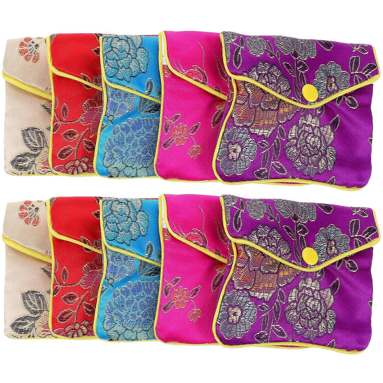 10pcs Small Jewelry Bags Travel Jewelry Pouch Organizer Bags Embroidery Button Type Jewelry Bags