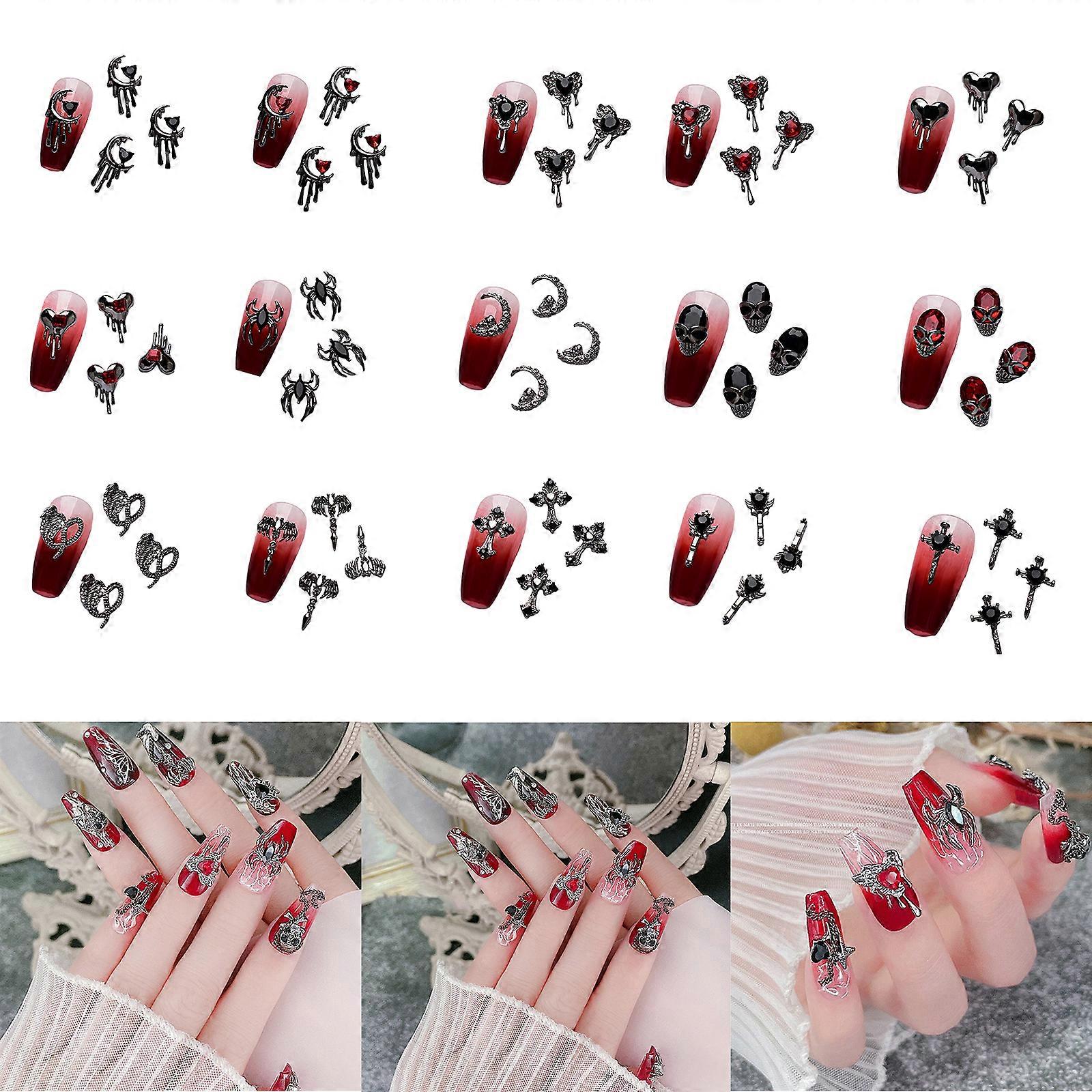 10Pieces Nail Art Metal Charm Skull Spiders Skeleton Silver Rhinestones 3D Nail Charm Nail Art Decoration for Women