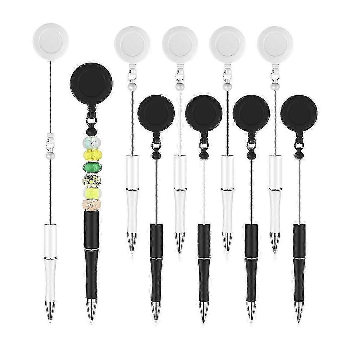 10pcs Bead Pens Black Ink Ballpoint Pen DIY Pen Retractable Badge Reel Pen Ballpoint Pen for Studen