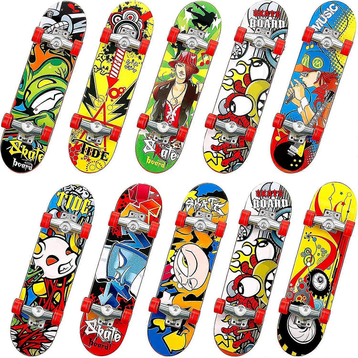 Various patterns: mini finger skateboards are designed in different patterns and varied color, the funny appearance can easily find favor with most people Proper size: each finger skateboards measures 3.74 x 1 inch/ 9.5 x 2.5 cm, suitable size for you to play or to exercise your fingers, easy to carry around Portable mini skateboard: fingerboard skateboard is in proper size and convenient to take and play everywhere, you can carry it with you when traveling or work, this funny toy can help you relax yourself Finger exercise: with these real-like finger skateboard, you can improve your finger coordination by playing the finger skates during work, study and leisure time Durable and long-lasting: finger skateboards are made of hard plastic and alloy pulley, the bottom of skateboard adopts the baking paint finish, so the pattern are not easy to be fade off
