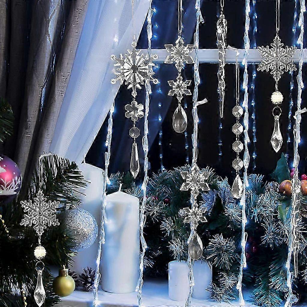 10 Pieces Seasonal Acrylic Faux Snowflakes Hanging Ornament Transparent Pendant