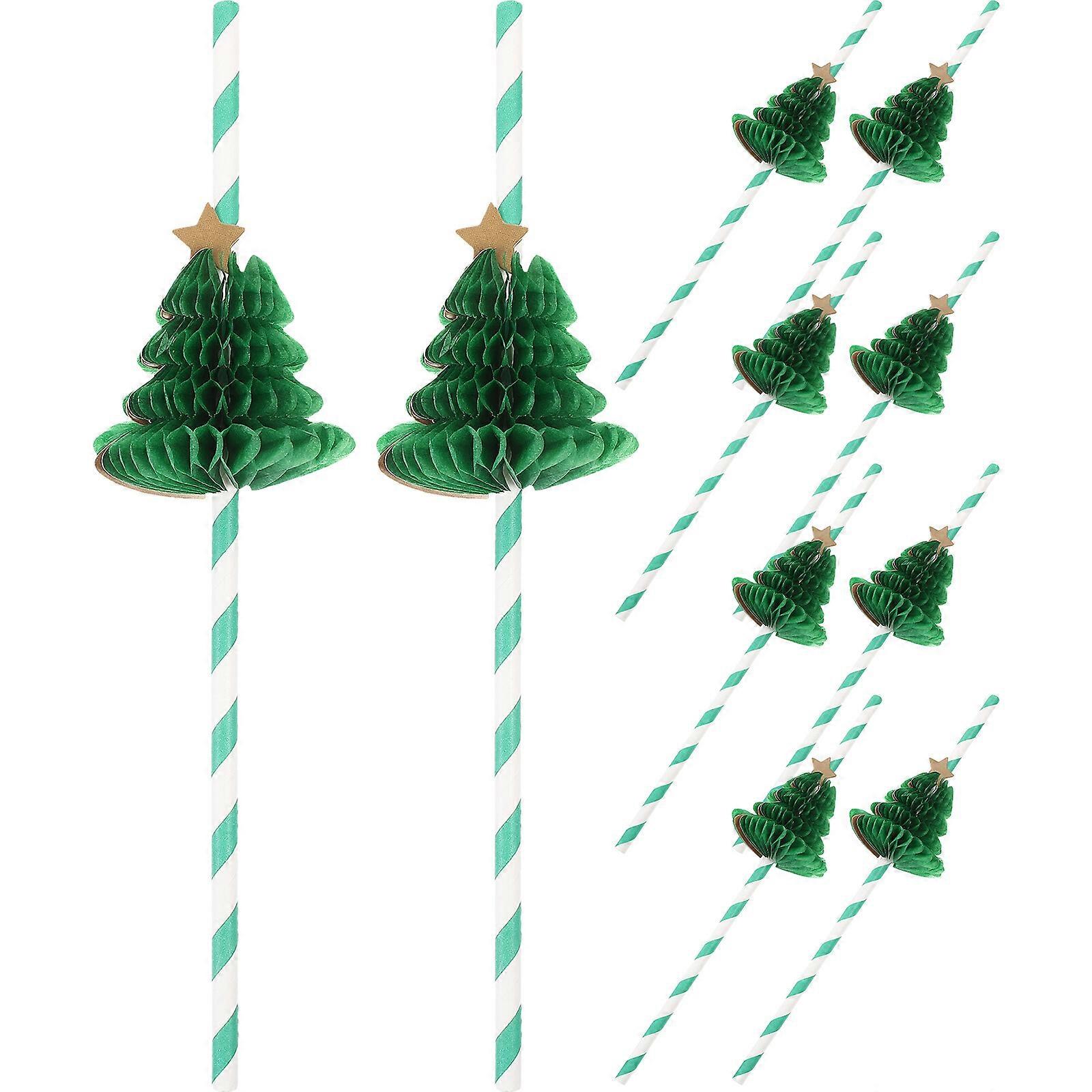 10pcs Paper Xmas Tree Honeycomb Straws Christmas Drinking Straws Party Supplies