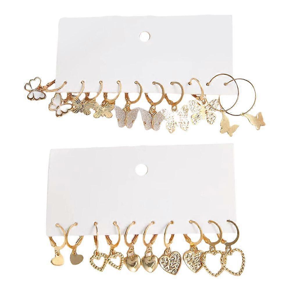 10 Pairs Simple Earring Set Metal Heart Butterfly Earrings Set C-shaped Earring