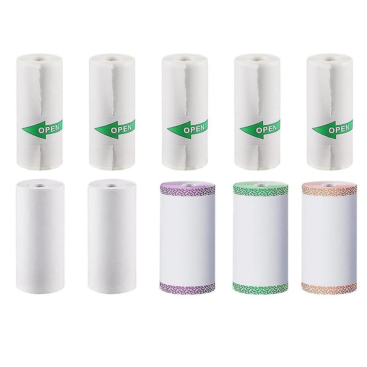 [Package includes] You will receive 10 rolls of instant camera reprint hot paper, which includes 3 rolls of same side recording paper, 2 rolls of high-quality white printing paper, and 5 rolls of self-adhesive printing paper. Mini printer paper size:Color-edged printing paper diameter: 30mm, 10 rolls of paper, this great feature ensures seamless and effective printing experience, allowing you to unleash creativity without any limitations. [Upgrade Material] safe for children. High quality hot paper for inkless cleaning and printing. The thermosensitive coating is a smooth, transparent, medium thickness, waterproof, and scratch resistant material for mini photo printer accessories. Compatible with all common thermal printing systems. Don't worry about the sticker falling off. [Clear printing] You can experience excellent printing quality and clarity by using photos and other printing materials on stickers. Its easy to cut nature makes it an excellent choice for children, who can easily shape labels into their favorite and add their own vibrant colors. [ ] Instant camera hot paper has three colors, a sufficient quantity, and is more suitable for children's drawing paper. They can cut them into any shape and pattern they like, not only enjoying the fun of wearing pictures, but also fully unleashing their imagination and creativity, printing black and white photos for painting or filling colors. [ Multi use ] Mini heat print paper can be used to print notes to organize tasks and any content you need, such as category labels, photos, text documents, DIY projects, stickers, notes, etc. It can also be used as fax paper, thermal instrument recording paper, printing paper for cash registers and POS printers Colour:As Shown Material:Paper Package Contents: 10 x mini printer paper Only the above package content, other products are not included. Note: Light reflection and different displays may cause the color of the item in the picture a little different from the real thing. The measurement allowed error is +/- 1-3cm.