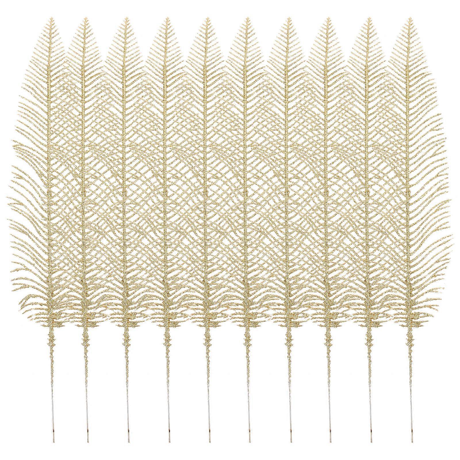 10pcs Glittering Gold Christmas Tree Picks, Artificial Leaves for Holiday Decor, Tabletop Arrangements, Wreaths, and Floral Designs, Vivid Realistic