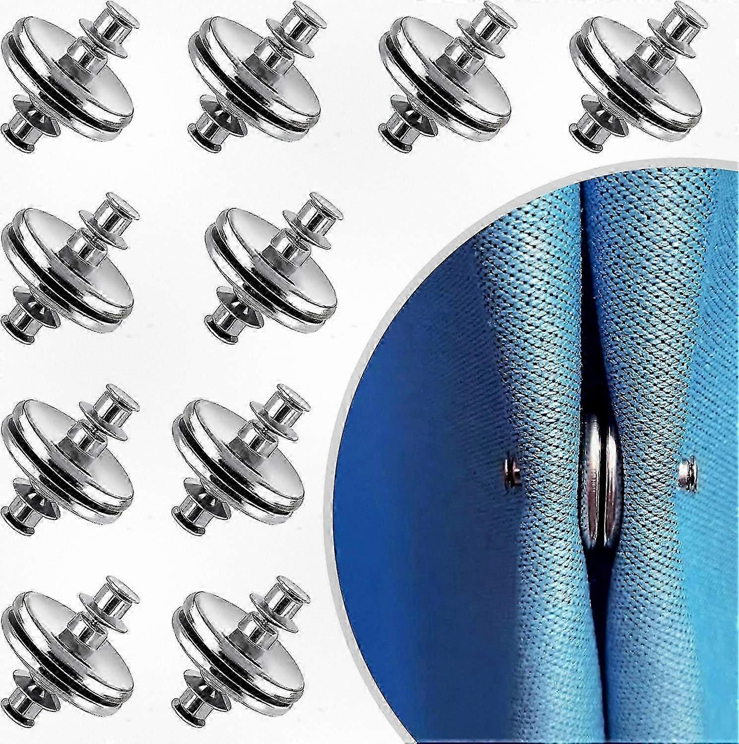 Powerful Magnetic Curtain Holdback Buttons are crafted from premium zinc alloy, featuring a strong dual-sided magnet inside, which provides more powerful magnetism than standard magnets. The unique needle buckle design ensures that the curtain magnet buttons are securely fixed in any position on the curtain and will not slide or drop. Easy to Install: No extra tools are required, and installation can be completed in seconds. Simply lift the cap of the button at the bottom using your thumb and index finger to detach the back plug from the magnet; insert the needle into the curtain; and reattach the button. Stable Your Curtain: These curtain weight magnets effectively stabilize any curtains, preventing them from blowing around or allowing sunlight to seep in, thus creating an ideal sleeping environment. The magnet buttons connect to each other to hold the curtain firmly in place by providing additional weight. Wide Application: These curtain weight magnets are suitable for curtains, tablecloths, shower liners, refrigerator magnets, chalkboards, and more. The concealed design enhances the aesthetic of your curtains. The Curtain Magnets Closure is perfect for home, kitchen, bathroom, hotel, or office use. Perfect Accessories: The needle fixing design allows for easy installation and removal without damaging your curtains. It is an excellent choice for securing curtains.