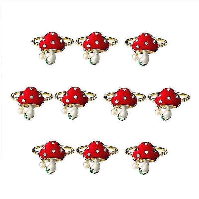 10Pcs Mushroom Napkin Rings Red Napkin Ring Holders Holiday Table Decor for Wedding,Party, Dining T