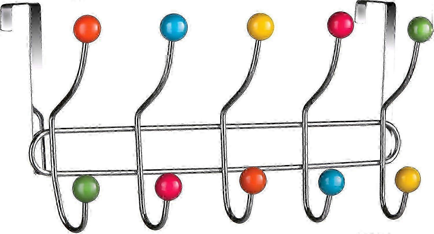 Coat Rack with 10 Chrome Hooks, Colorful Multicolor Design for Entryway Storage