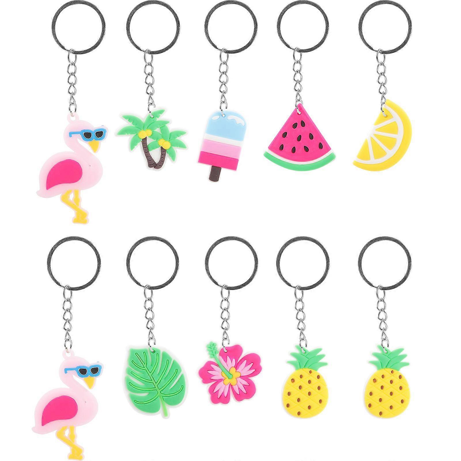 10Pcs Summer Keychains Tropical Hawaiian Keychains Hawaii Style Key Chain Ornaments Hanging Decors (Random Style)
