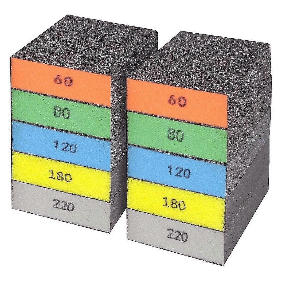 10Pcs Sanding Sponge, Washable and Reusable Sanding Block 60/80/120/180/220 Grit Sand Paper Assortm